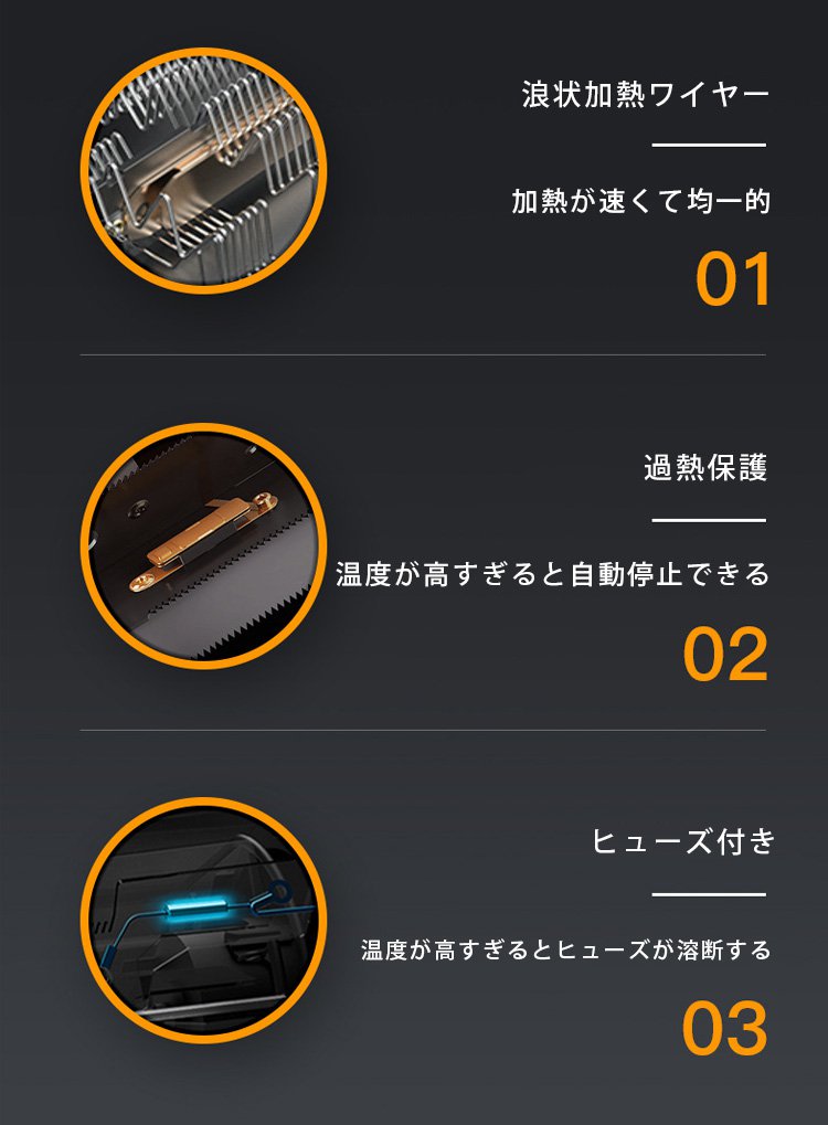 ● わずか3秒で瞬時に暖かさを実感できる、忙しい朝や寒い夜にも最適なラピッドヒーターです。