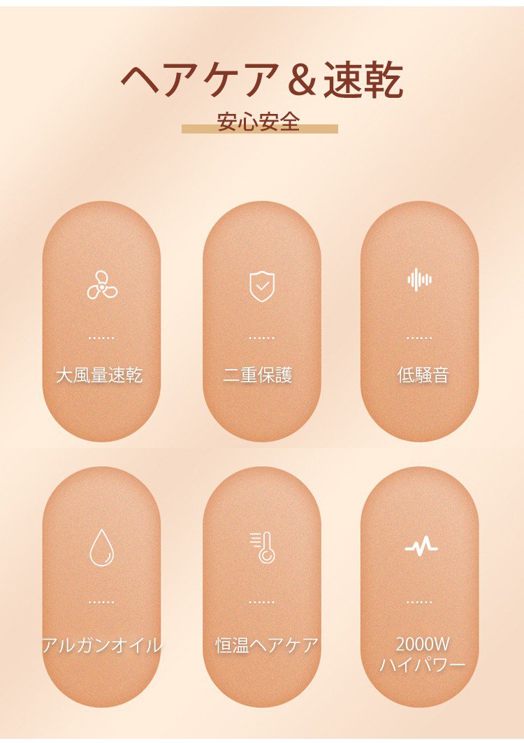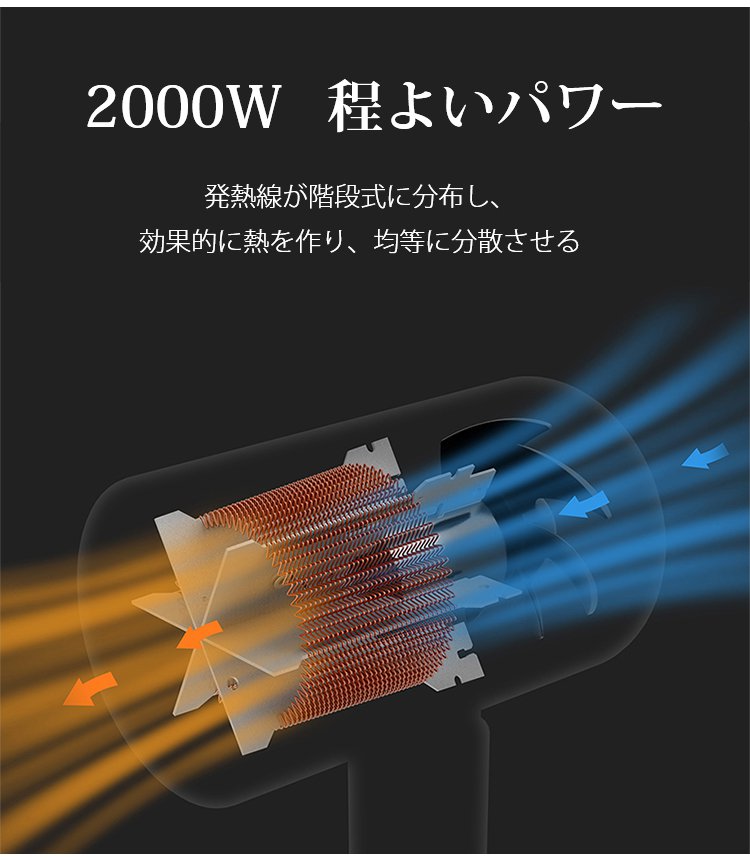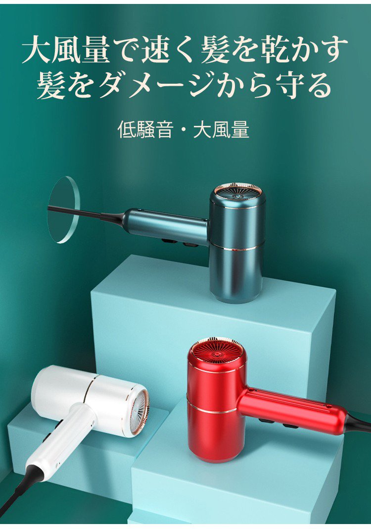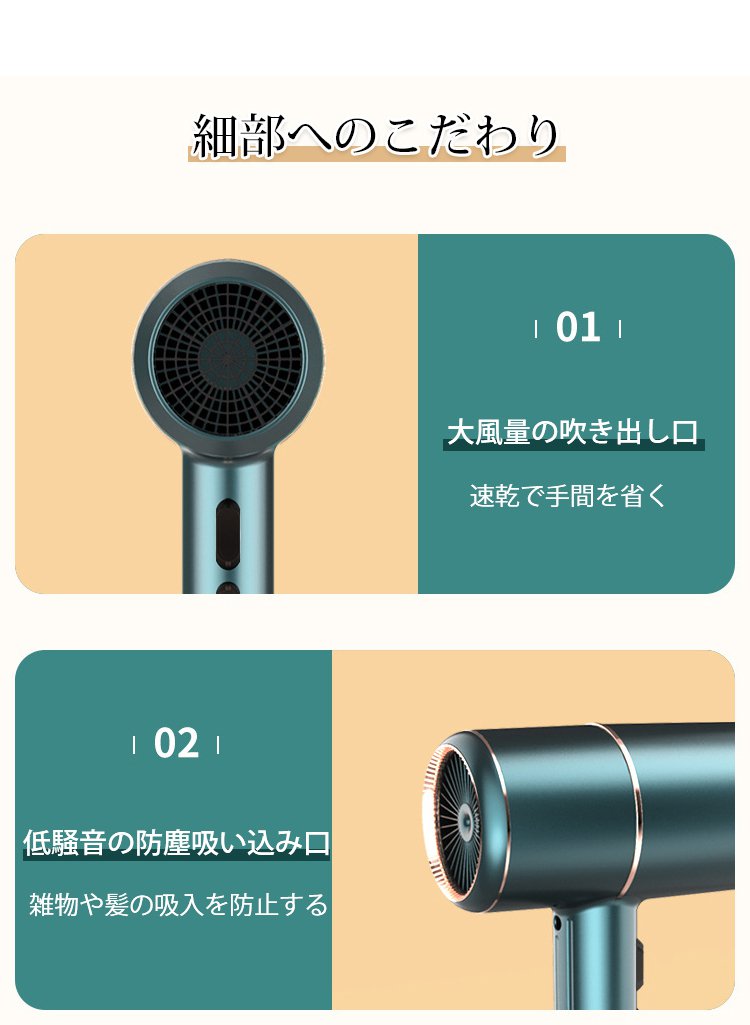 大風量、速乾、マイナスイオン、低騒音、過熱保護