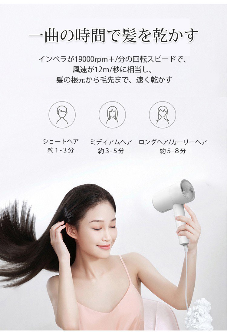 ● 速乾・低騒音・マイナスイオンの三拍子が揃い、毎日のヘアケアがもっと快適になります。