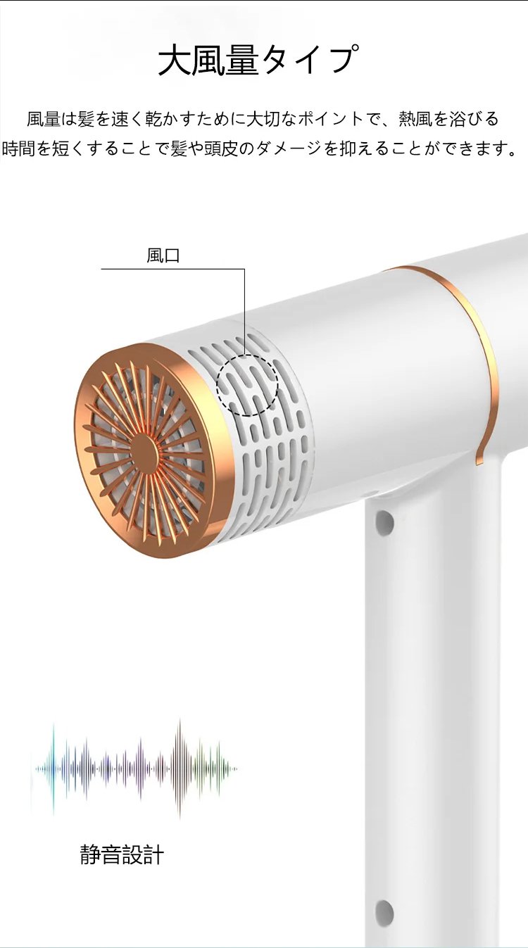 【二点目半額】【マイナスイオンドライヤー】マイナスイオン、静音設計、大風量、3モード調節、コンパクト