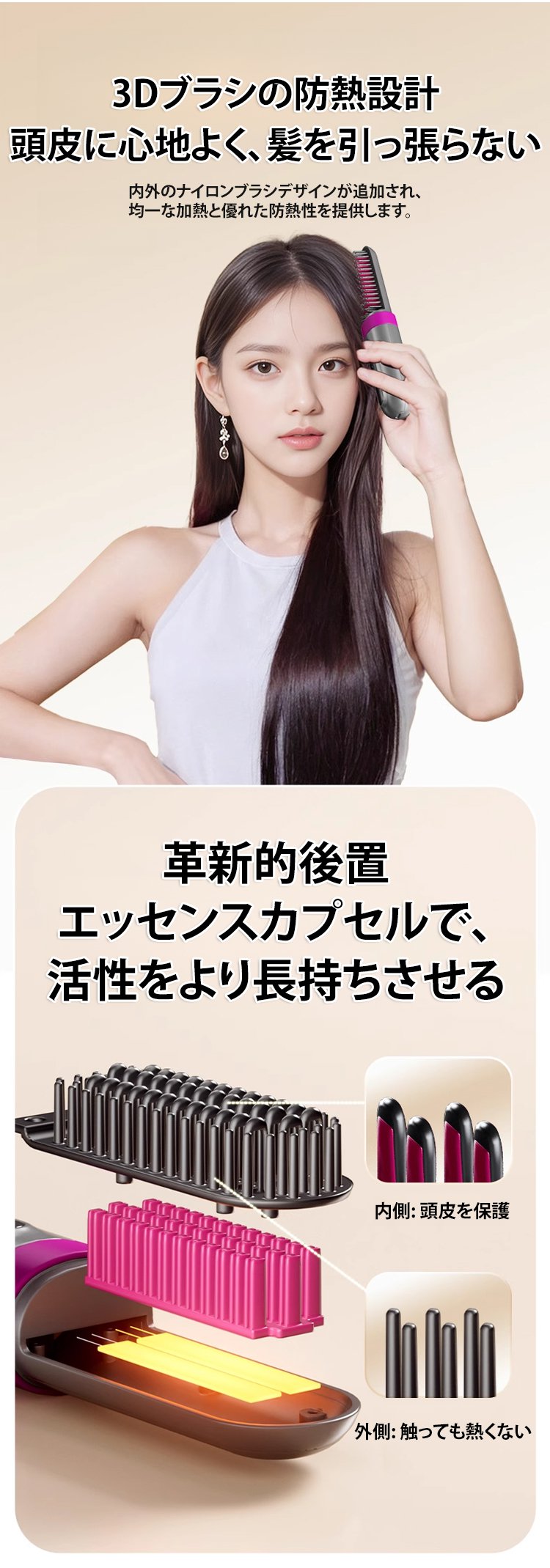● たった一梳きでサロン級のストレートヘアを実現!マイナスイオン効果で髪のダメージを軽減し、毎日のスタイリングがストレスフリーに。